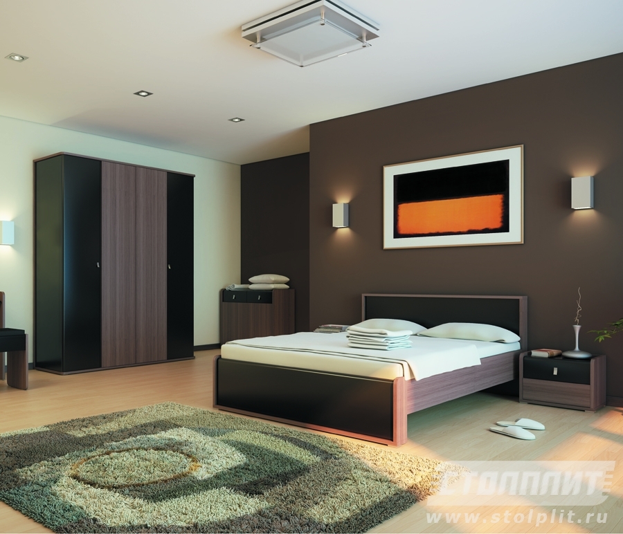 Далее нужно продумать, что именно вам нужно и как можно разместить все так, чтобы было удобно и комфортно. Главным предметом конечно же является кровать. От того какого она качества, зависит не проста хороший сон, но и качество всей жизни в целом. Выбирая кровать обратите внимание на ее каркас. Основанием может служить жесткий лист ДСП, решетки или ламели (выгнутые планки). Последнее намного предпочтительнее, так как создает дополнительный ортопедический эффект. Еще одной очень важной деталью , но незаметной для глаз, является перекладина, которая держит короб. Она должна быть шириной не менее 25 см. и из прочного материала. Если помещение небольшое, то для экономии пространства можно заказать кровать с выдвижными ящиками внизу - это удобное место для хранения постельного белья. В комплект с ней можно подобрать тумбы, столики, консоли.